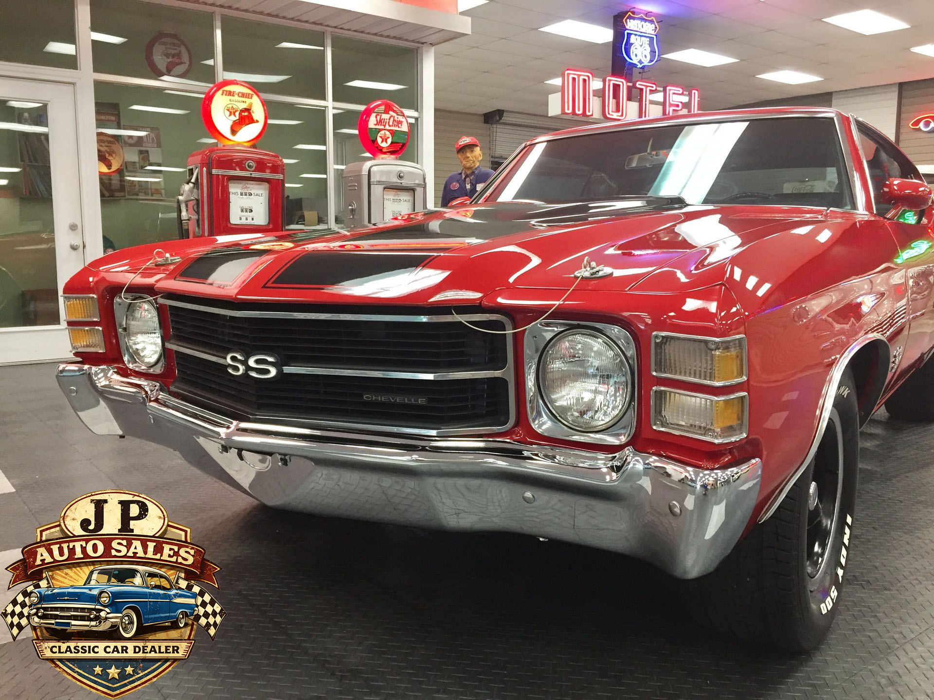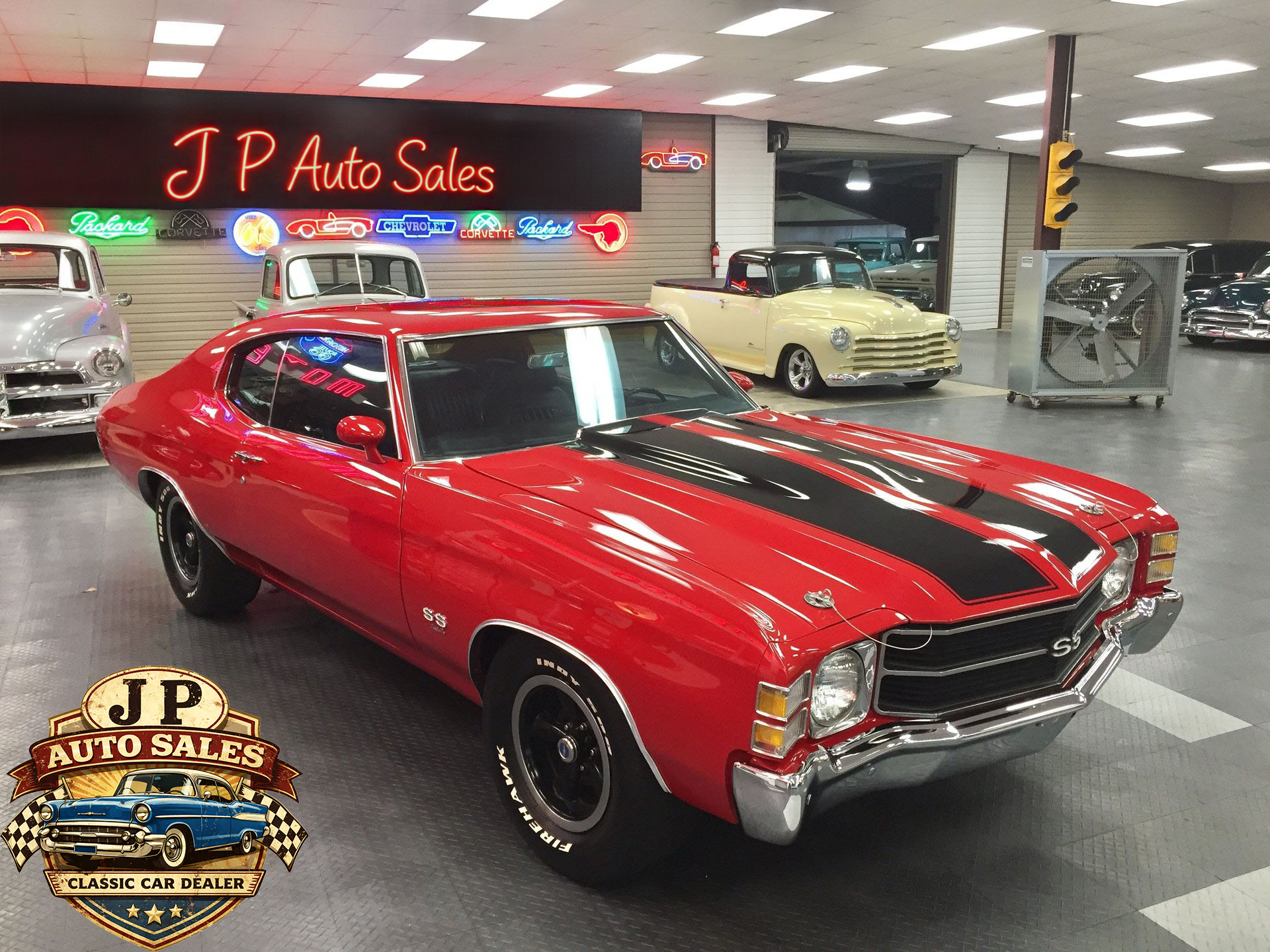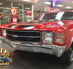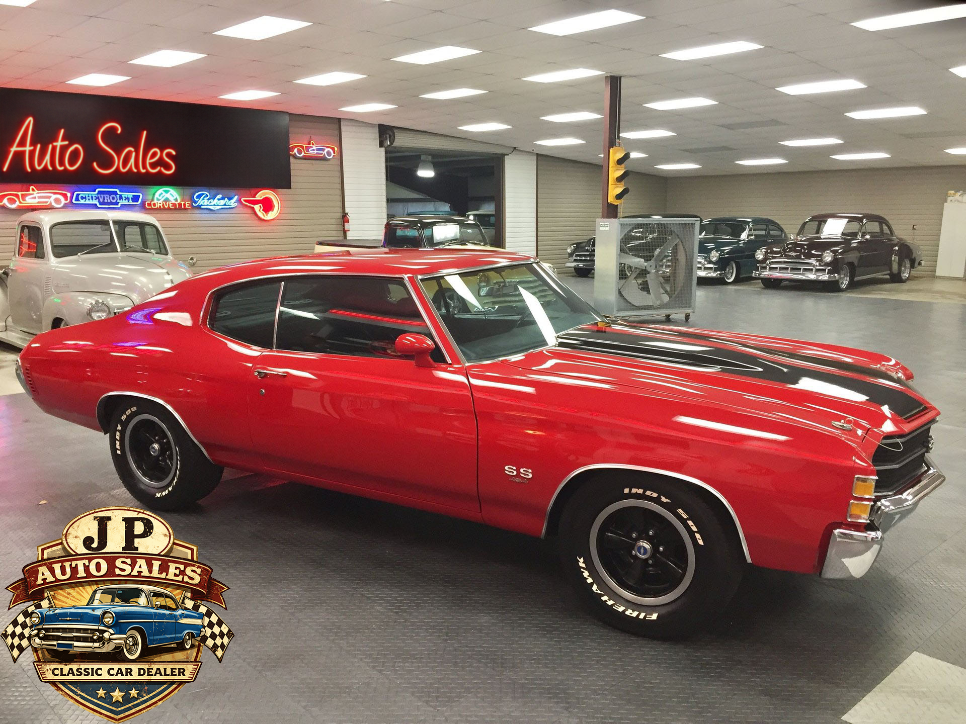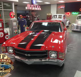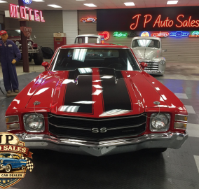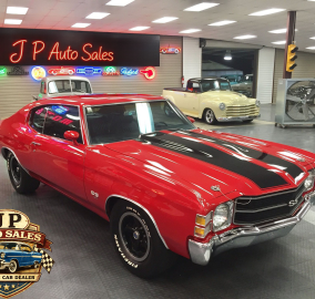 1971 Chevrolet Chevelle 454 SS – Frame-off restored Cranberry Red classic with non-matching 454 V8, Turbo 400 automatic, 12-bolt rear, power steering & disc brakes, A/C, show-quality two-stage paint, new chrome, stainless, glass, and weather stripping. Just under 3,000 miles since completion.