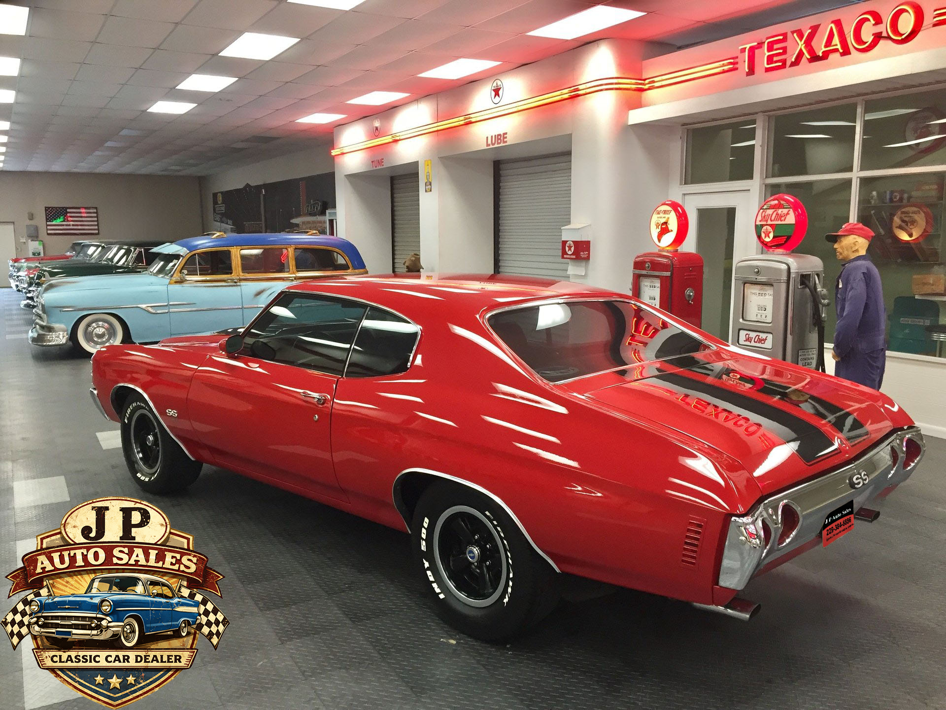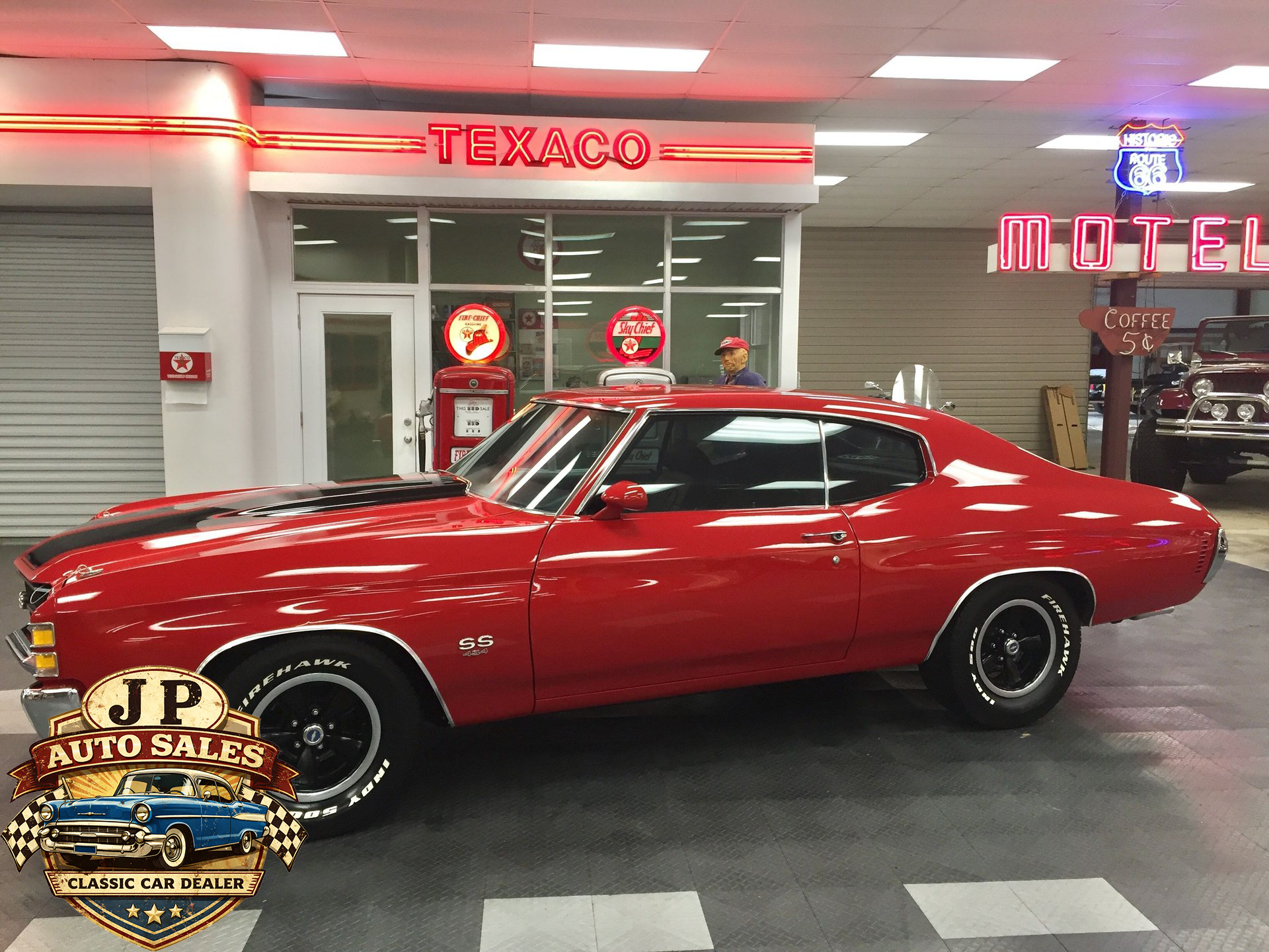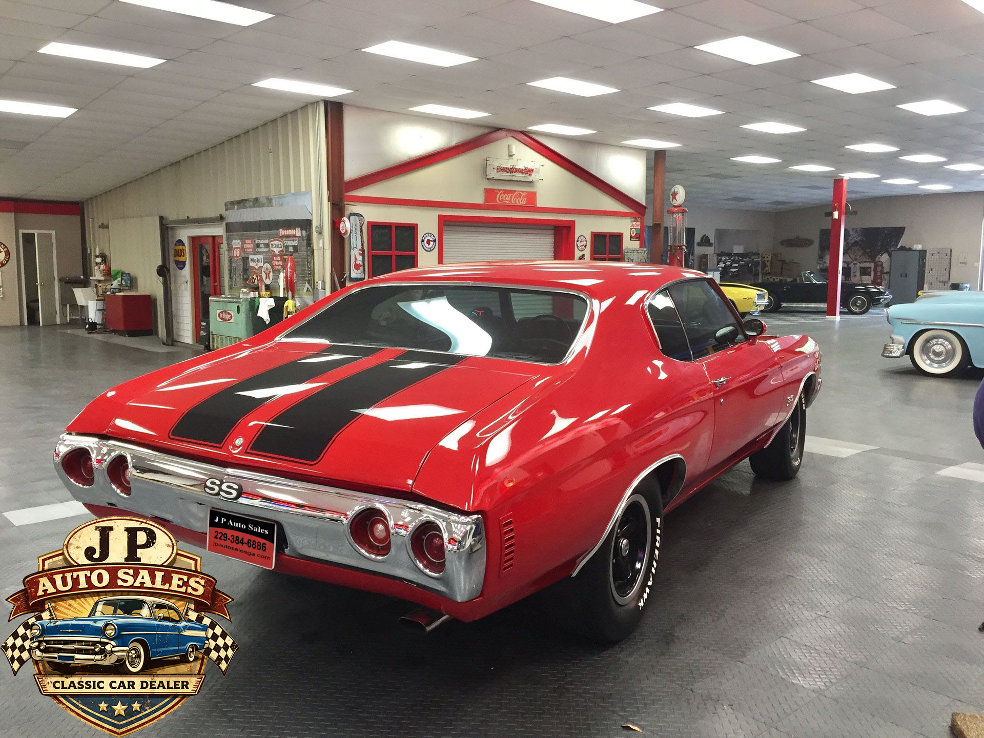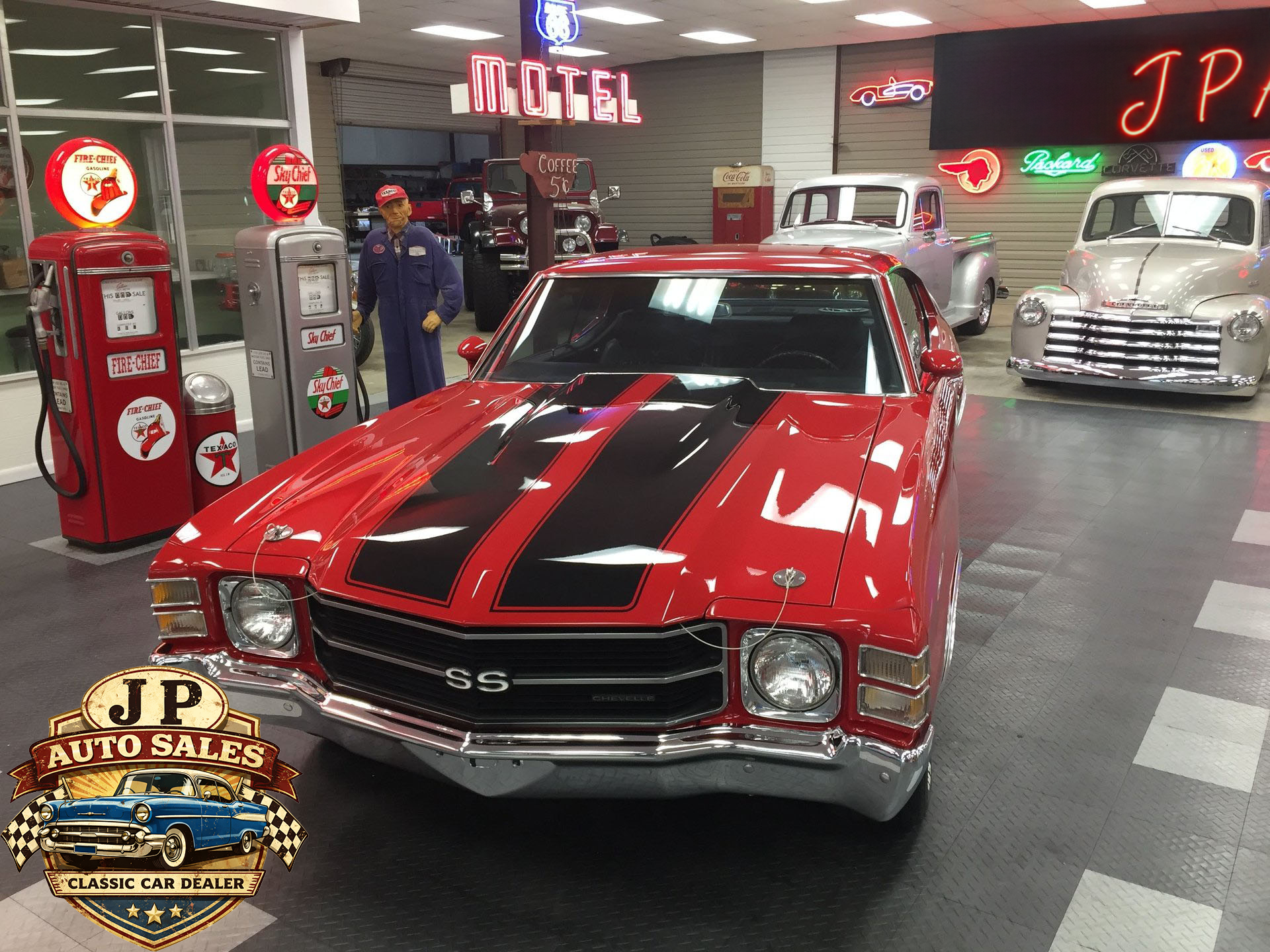 1971 Chevrolet Chevelle 454 SS – Frame-off restored Cranberry Red classic with non-matching 454 V8, Turbo 400 automatic, 12-bolt rear, power steering & disc brakes, A/C, show-quality two-stage paint, new chrome, stainless, glass, and weather stripping. Just under 3,000 miles since completion.